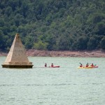 Acabem la visita i volem anar a veure el campanar de Sau que, tal com diu la cançó “emergint de l’aigua amb orgull”; per aixo prenem un cami que va voltant el pantà que tot i estar asfaltat fa uns dos metres d’amplada i te moooltes curves… Aquest camí s’agafa cap a la esquerra despres de passar el parador de turisme de Vic-Sau i va a parar a la casa de colonies de Can Mateu. Ens incorporem a la N-141d, passem per sobre de la presa de Sau i anem a parar al mirador del campanar de Sau.